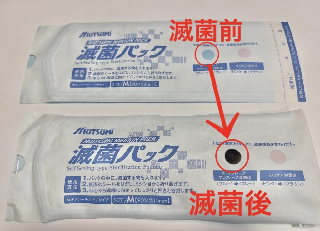 ↑滅菌パックに入れて滅菌